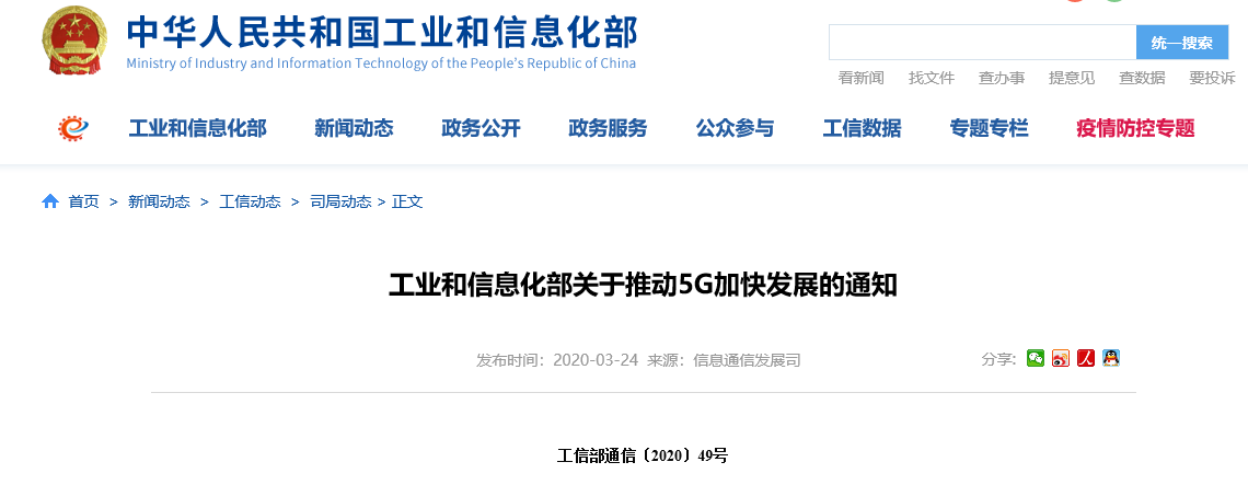 行業資訊 | 5G加速,工信部印發《關于推動5G加快發展的通知》