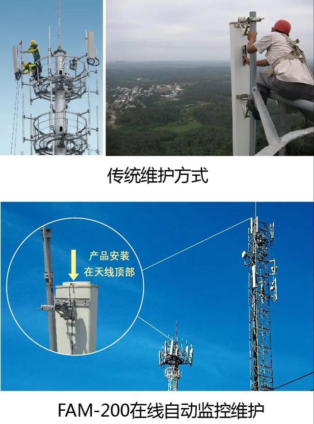 FAM-200雙GPS天線姿態在線監控系統通過安裝在基站天線的工參監測終端組,能夠遠程監控天線的方位角、俯仰角等工參,通過無線通信方式,無需人工巡查便可將基站位置及天線姿態參數信息實時傳輸到監控中心,保證了基站天線信息的準確性和實時性。