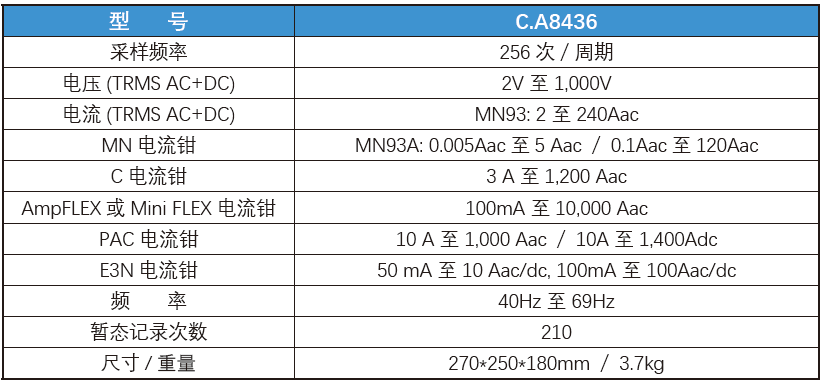 在電氣設備的安裝維護中,可測量所有電壓、電流和功率等電量參數并作出全面診斷。C.A8436全天候電能質量分析儀可同時捕捉及記錄所有的電能參數,中文菜單操作簡便。