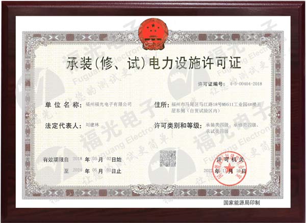 經(jīng)國家能源局福建監(jiān)管辦公室批準(zhǔn),福州PA電子官網(wǎng)有限公司榮獲《承裝(修、試)電力設(shè)施許可證》四級資質(zhì),電力專業(yè)水準(zhǔn)獲行業(yè)權(quán)威認(rèn)可。該證書的獲得,標(biāo)志著PA電子官網(wǎng)具備35千伏及以下電壓等級電力設(shè)施的安裝、維修和試驗(yàn)的能力,為PA電子在全國電力工程領(lǐng)域開拓市場提供了重要保障。