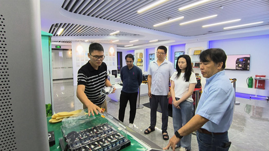 在生產研發中心和工作流程的參觀中,福光電子團隊向泰國客戶介紹了多種不同的新能源電池檢測設備,不僅對PA電子特點和參數進行講解,還逐一進行現場接線操作,讓客戶更深入地了解了PA電子的細節與特點。客戶也對PA電子良好的工作環境、有序的生產流程,嚴格的質量控制留下了深刻的印象。