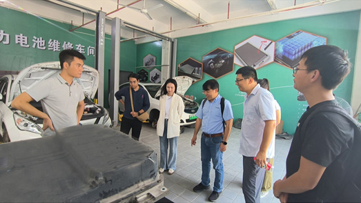 在動力電池維修車間的參觀中,PA電子團隊現場展示了鋰電池均衡儀、鋰電池充放電一體機、氣密性測試儀對EV電池包的測試維護流程。