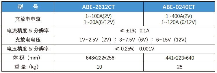 ABE-CT系列具有三種獨立的使用方式:電池放電方式、電池充電方式和電池活化方式。對落后電池進行容量試驗,低壓恒流充電,或多個循環周期多次充放電,激化電池極板失效的活性物質,使電池活化提升落后電池的容量。