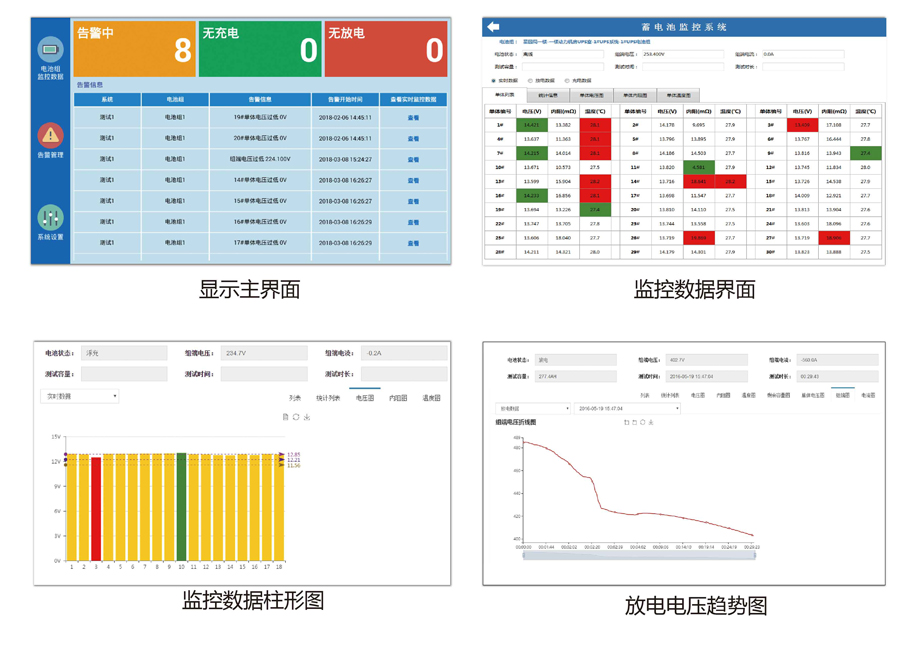 ● 放電容量測試支持:能自動判斷電池組開始放電,自動記錄整個放電過程和充電過程。因此,用戶無需在購買充放電測試所需的監控設備,節省資金,并且大大減輕維護人員的接線工作量