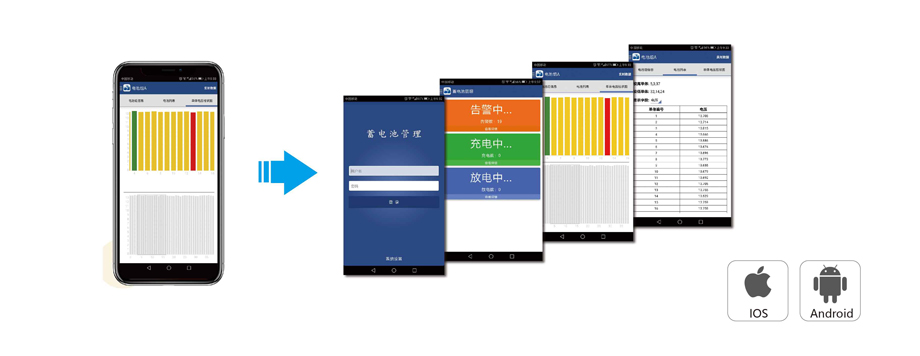 ● 配備專用APP:支持IOS和安卓系統,能在APP上查看所有的監 控參數和電池組運行情況