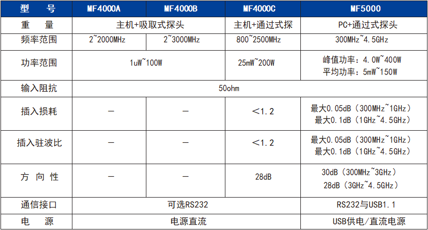 MF系列射頻功率計可用于TDMA,GSM,CDMA,CDMA2000,WCDMA,TD-SCDMA、雙向無線電(UHF,模擬和數字)、中繼系統、DVB、無線本地環路(3.5至3.7GHz)、ISM(半導體,醫療,2.45GHz)、戰術軍事 通信、雷達等領域的射頻功率測量。MF5000寬帶通過式功率計通過USB口與PC連接,可進行正、反向平均功率同 時顯示、峰值功率、突發平均功率、峰均比、CCDF、占空比、駐波比、反射系數、回波損耗的測量與顯示。