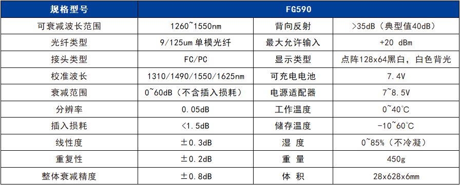微信客服:18850378315(微信號)FG590手持式可調(diào)光衰減器是為安裝、運營和維護光纖網(wǎng)絡專門設計的一種精準、耐用的便攜式儀表。具有小巧的外形、可選擇開關的背光顯示功能、超寬的光衰減范圍、精準的衰減精度以及用戶自校準功能和通用接口設計,同時衰減值通過液晶屏顯示。