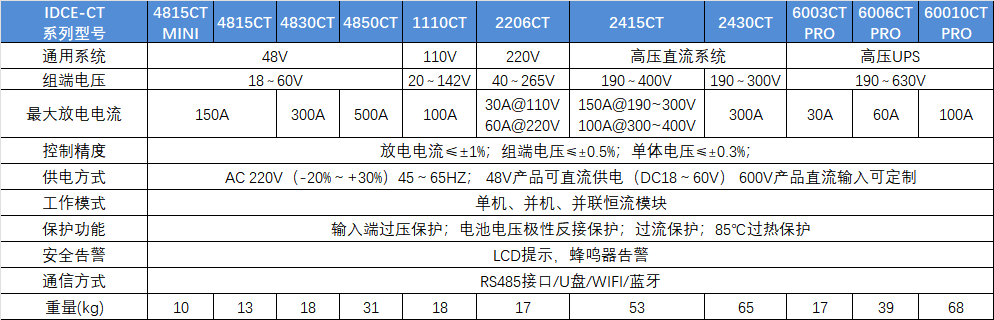 IDCE-CT系列蓄電池放電容量測試儀是蓄電池容量測試中的常用設備,在蓄電池離線狀態下作為放電負載,通過連續調控放電電流,實現設定值的恒流放電。
