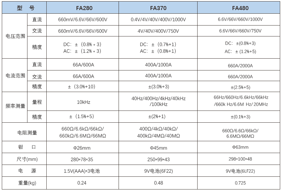 FA系列交/直流兩用鉗形表