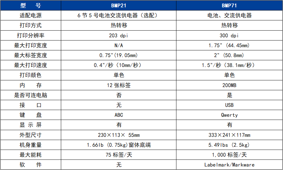 BMP21/BMP71 手持式標簽打印機