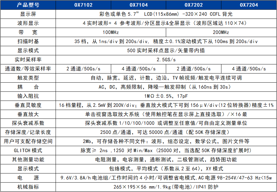 最大2.5GS/s實時采樣率,50GS/s等效采樣率,存儲深度每通道2500點(示波器模式下),可擴展到50K,另配有2GB可移動動SD存儲卡