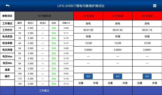 保存參數后啟動測試,點擊啟動后查看工作狀態,當均衡到達停止條件,所有通道顯示完成時,結束工作。